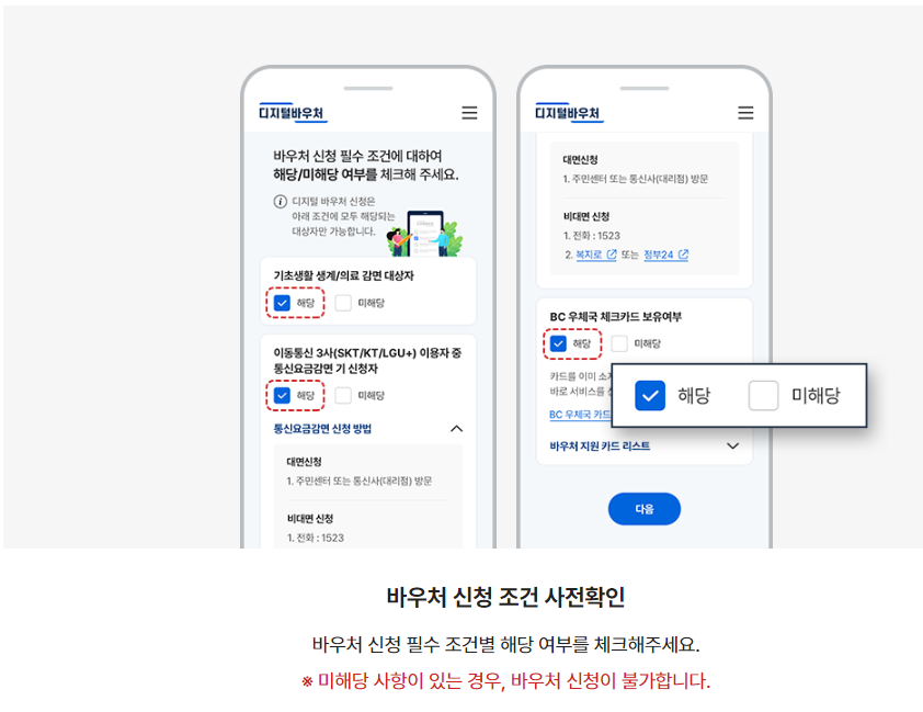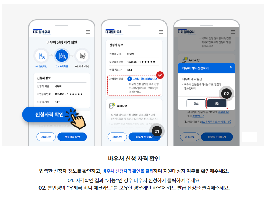 시범사업 참여자는 우체국 체크카드(BC)를 통해 디지털 바우처를 지급받아 이용할 수 있습니다.