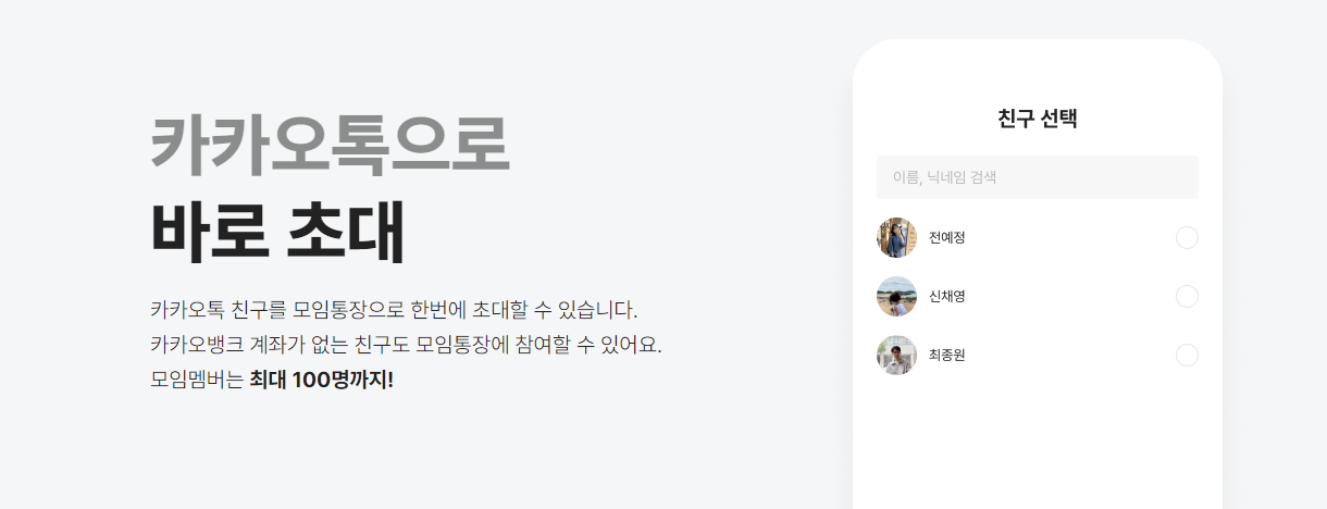| 카카오뱅크 모임통장 | 토스뱅크 모임통장 | |