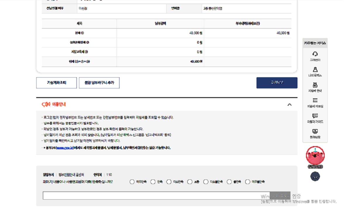 2.납부하기(신고하기 아님)→지방세→본인조회납부→검색→납부